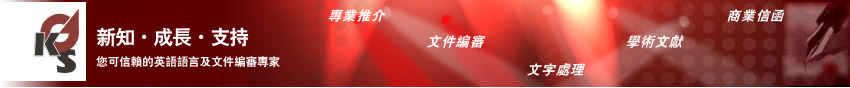 學術服務:您的研究文章、學期文章、報告、學位論文、專題論述以及其他英語文章是您的學術資本。不要讓語法、標點符號、時態以及句子結構中的錯誤成為您進入全球學術交流領域的障礙。 我們可以幫助您!